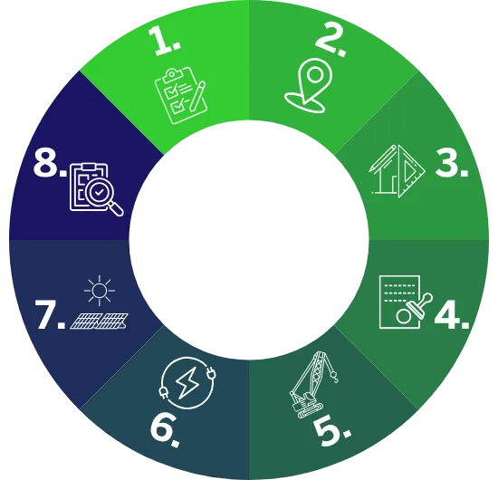 Alle unsere Projekte basieren auf detaillierter Vorbereitung, hochwertiger Technik und Fachwissen. Unser umfassender Service beinhaltet Planung, Genehmigung, Bau und Wartung.